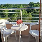 Tijdens een verblijf in 1-slaapkamer Отличен Двустаен Апартамент Primorsko kunnen gasten zich ontspannen op een terras op 15 minuten lopen van Severna plaz.